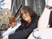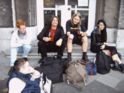 Als man aufgegessen hatte, platzierte sich unsere 3er Gruppe auf der Treppe vor nem großen Gebäude, wartete so auf die Anderen. Als diese endlich kamen, blieb man auf dem großen Platz stehen und... redete. Die jenigen, die mit dem Gesicht zur Kneipe hin standen, durften sogar das tolle Fußballspiel Deutschland – Türkei beobachten... Irgendwann ging uns dann die Puste aus, man setzte sich also kurzerhand hin... Und verweilte so mindestens 2 Stunden... Der Abend war noch lang, gegen 12 kam man dann wieder in der JH an...