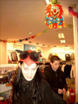 Nach einem schmackhaften ( o_O ) Essen bei McDoof wollten wir den Rest der Gruppe suchen. Telefonisch wurden wir an einen Punkt gelotst, den wir prompt verfehlten. Nach einigem hinundher telefonieren fand man sich aber doch. Der zweite Teil wollte auch etwas essen, also machten wir uns auf den Weg zu C&A, wo ein Mäcces zu finden war. Kaum, dass wir da waren, haben die kindlicheren Gemüter ( ich bin's nicht schuld ) die benachbarte Karnevalsabteilung entdeckt. Keiner konnte wiederstehen, und so fing die Gruppe erst einmal an, sich bunt einzukleiden. Einer trug einen Wikingerhelm, während er mit einer Keule auf einen Ferox mit rosa Mütze einprügelte.