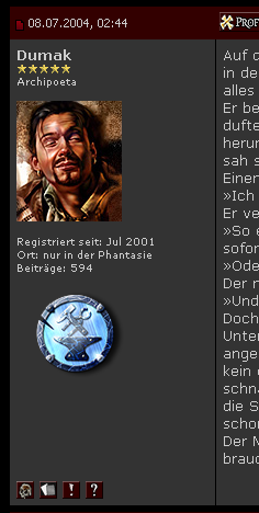 Link zur EinführungsseiteEin wichtiger Teil dieser Idee sind die Ansprechpartner. Es ist wichtig, daß sich mit Neulingen auseinander gesetzt wird, daß sie eingebunden werden, daß ihnen das Rollenspiel erklärt wird, man sie an die Hand nimmt und sie Kontakte knüpfen läßt. Dazu sind allerdings engagierte User des Rollenspiels nötig, die diese Aufgaben übernehmen möchte und auch wirklich zur Verfügung stehen, sollten Fragen an sie herangetragen werden. Wenn weiterhin viele nur ihre eigenen persönlichen Ziele verfolgen und sich nicht um Anderes kümmern, wird das Rollenspiel über kurz oder lang zu einer toten Schaubühne für einige wenige Selbstdarsteller. Viele wissen es: Das Rollenspiel ist ein Miteinander, kein Laufsteg für Einzelne. Und gerade durch die sinkende Zahl der sich Anmeldenden kann man nicht mehr davon ausgehen, daß schon von alleine genug davon irgendwie den Weg in eine Gilde finden werden. Wir müssen da also etwas mehr nachhelfen.